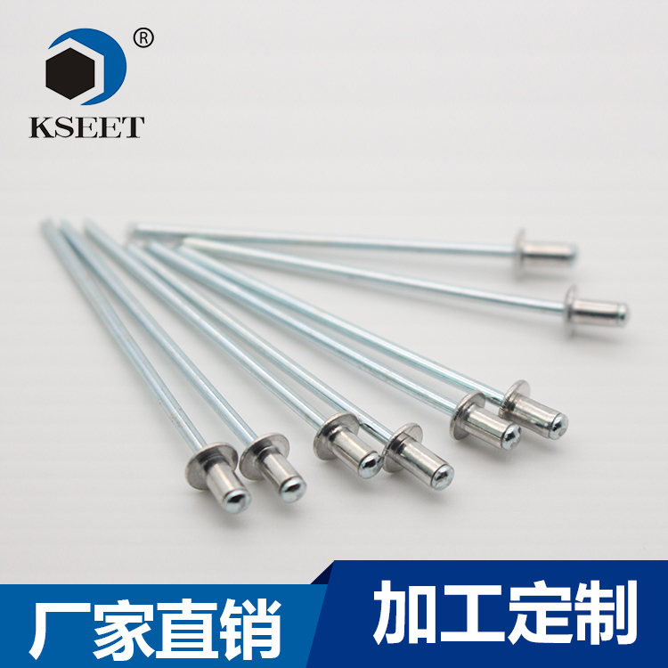 开口圆头半不锈钢铆钉安装简易,可在单边安装操作,不需要其他配合件,成本低,产品结构简单,成本较低,连接稳固,夹紧力适中,连接稳定可靠。适应广泛,适用于各种材质的板材之间的紧固。规格品种多,多材质、多孔径、多长度、多种表面处理方式、可选种类多,操作方便,铆接工具操作简单,安装效率高。